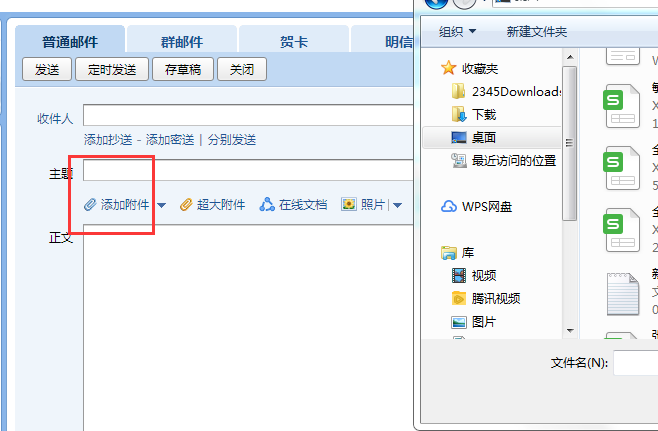 2、选择添加附件,选择压缩包文件上传,上传完毕点击发送即可。