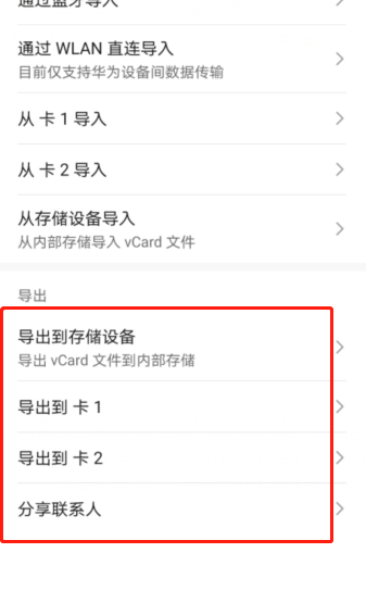 5、选择“导出到卡1”或者“导出到卡2”即可。