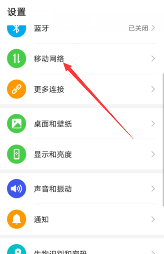 1、在设置菜单下点击打开【移动网络】。