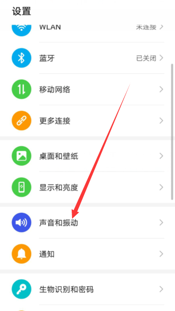 1、点击手机桌面的设置,进入设置后,点击声音和振动选项。