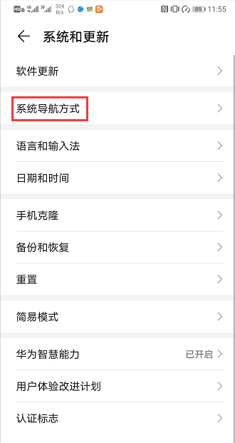 2、选择“系统导航方式”。