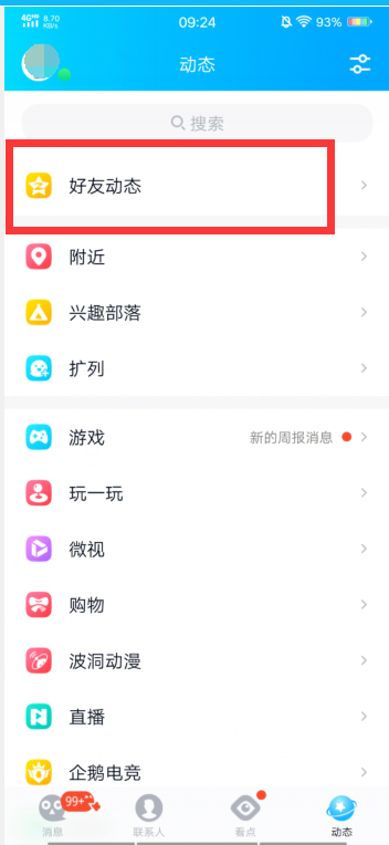 1、打开手机里的QQ软件,点击动态进入QQ空间。