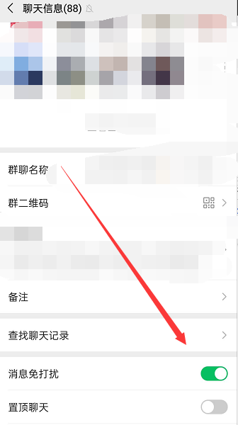3、进入聊天信息页面后,把消息免打扰的右侧按钮打开即可。