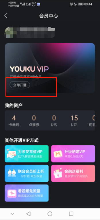 以优酷9.2.0为例,优酷会员买一个月的方法是: