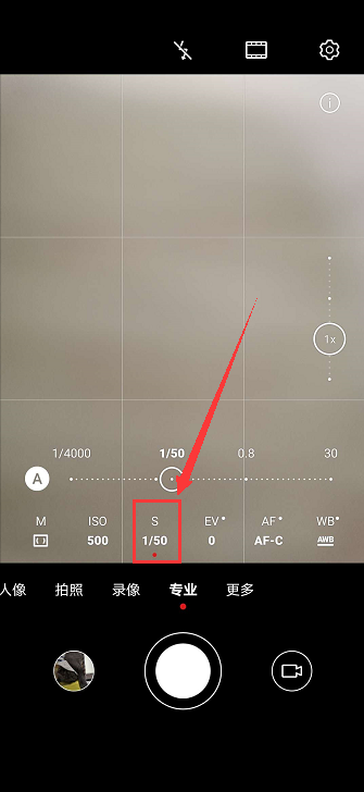 2、点击“s”,s就是快门速度,调整自己想要的速度即可。