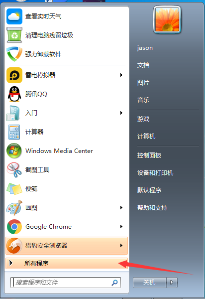 2、弹出的界面里面,点击这里的所有程序进一步展开;