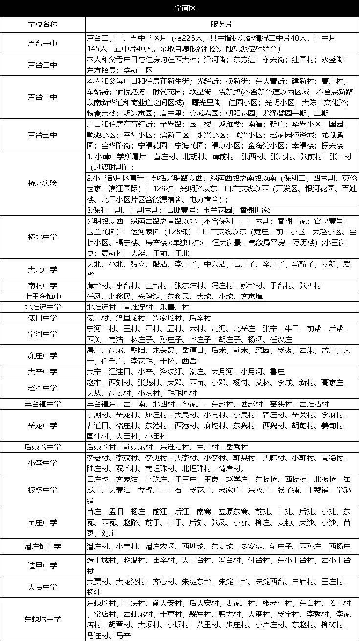 3.芦台一中计划今年招生225人,招生范围为宁河区户籍、芦台镇老城区小学学籍学生,采取自愿报名和随机派位相结合方式,其中计划投放二中片指标40人,三中片指标145人,五中片指标40人。
