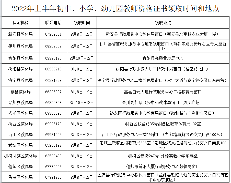 2022上半年洛阳教师资格证书领取时间地点(初中+小学+幼儿园)