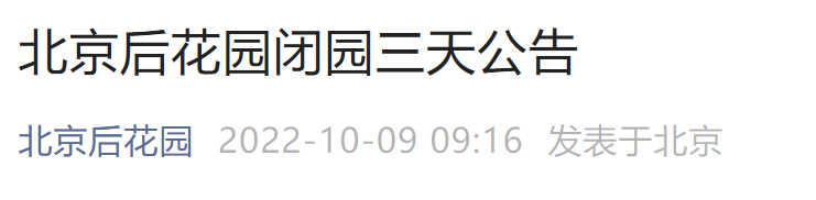 10月8日至11日北京后花园闭园三天公告 云台花园闭园时间