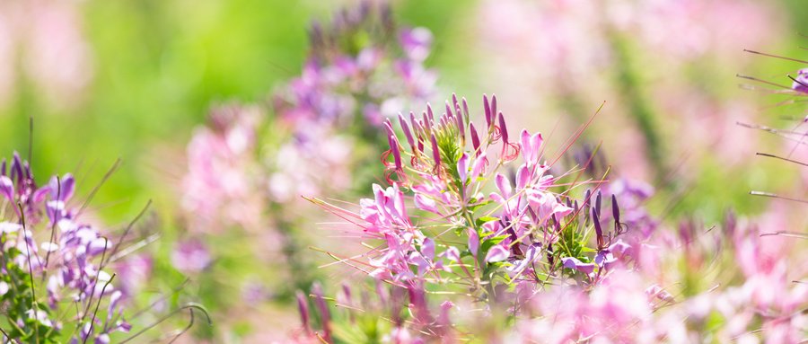 “醉蝴蝶”的花朵是渐变色的,由淡白到淡红再到淡紫,花瓣盛开时像蝴蝶翩翩起舞,轻盈飘逸、曼妙多姿。成片的醉蝶花娇艳盛开,一朵朵丰满的花球犹如千万蝴蝶在飞舞。花朵点缀在细长直立的花梗上,花香四溢,犹如谱写一首蝶恋花。