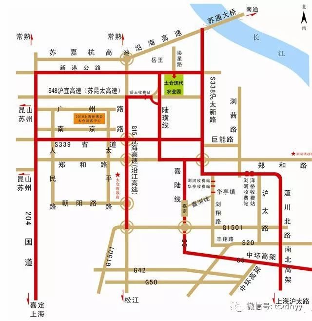 上海出发:G15沈海高速→ S48沪宜高速(往太仓港)→沙溪出口下→左转陆璜线→右转新港公路向东约2KM