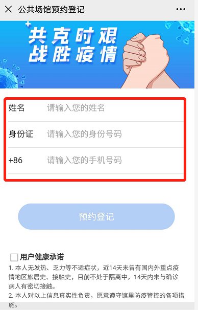 填入姓名、身份证、手机号码即可预约