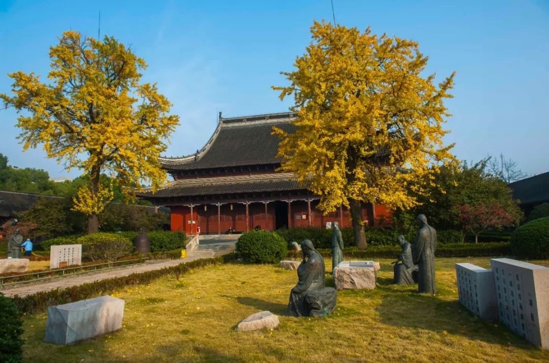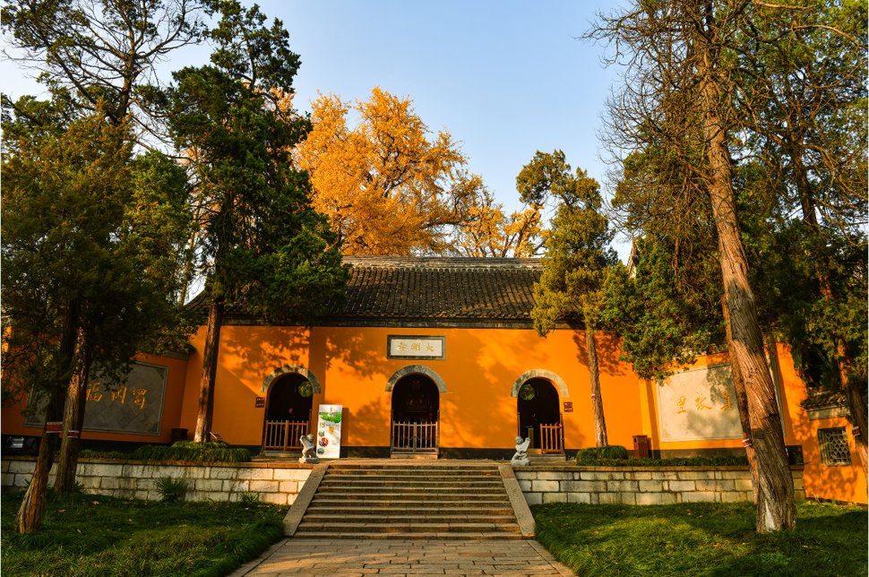 寺中有一棵700多岁的古银杏树,初冬时节,满树金光灿灿,片片黄叶随风落下,如一只只飞舞的黄蝴蝶。