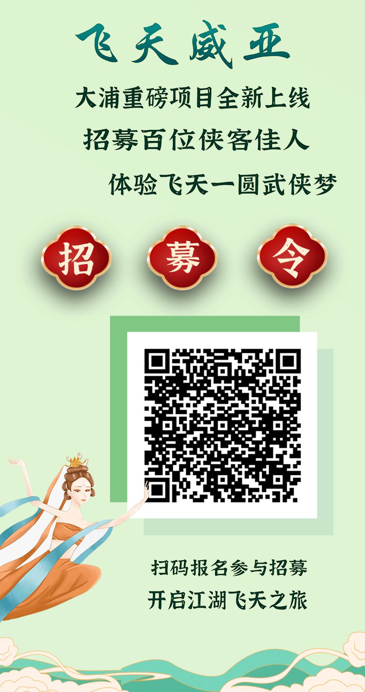 成功入选的侠士佳人们,9月12日上午9点集合,由导游带领入园一起到飞天威亚,换上汉服免费体验飞天之旅。