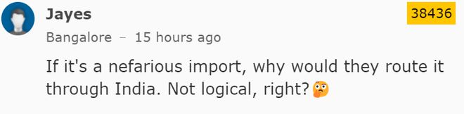 “如果是非法进口,他们为什么要经过印度。不合逻辑,对吧?”↓