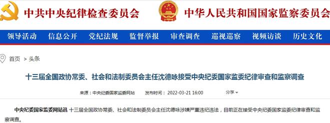 2022年3月被查。