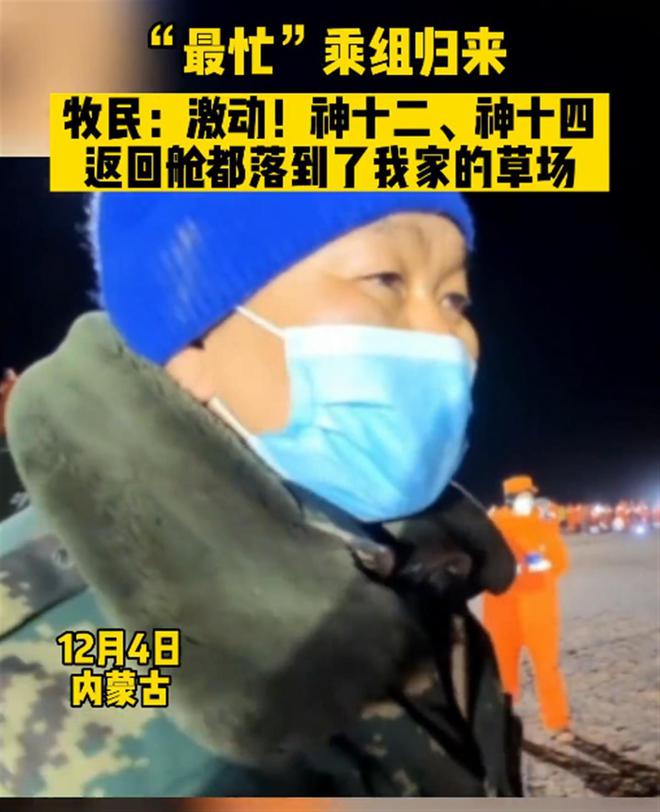 “亲眼看到航天英雄们平安回到祖国的怀抱,看到他们身体状况特别好,心情特别高兴,特别激动。”该牧民说,提前几天他就通过手机知道了神舟十四号返回的消息,没想到这次能近距离观看返回。他还表示,当时神舟十二号返回也是降落在了他家的草场,不过当时没有到现场观看。