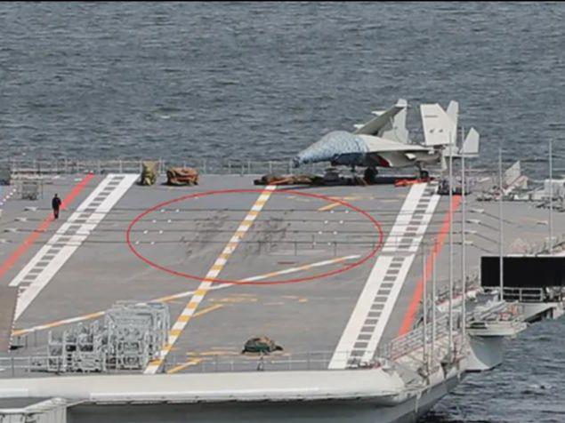 辽宁号飞行甲板上出现了战斗机着舰的明显痕迹