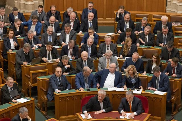 3月27日,在匈牙利布达佩斯,国会议员投票表决芬兰加入北约的申请。图/新华社