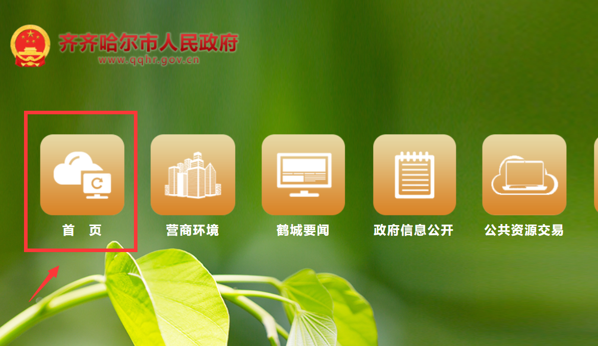 第一步:登陆齐齐哈尔政府网(www.qqhr.gov.cn),进入首页