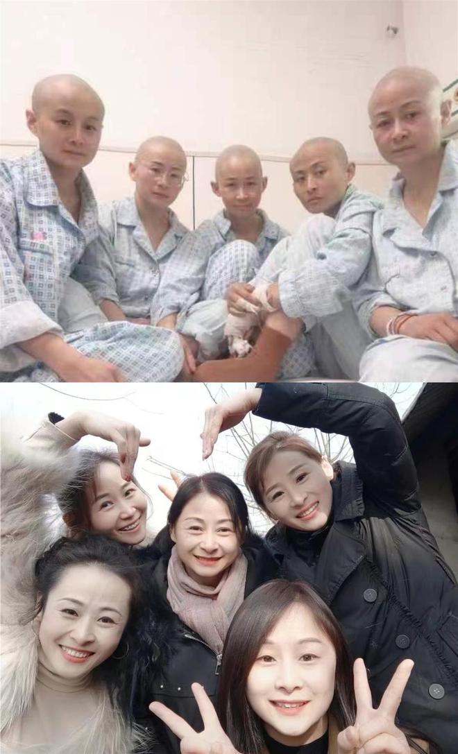 受伤姐弟的妈妈和四位姨妈剃光头捐皮肤(受访者供图)