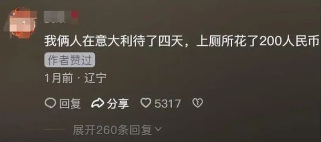 网友称在意大利上厕所花了200元