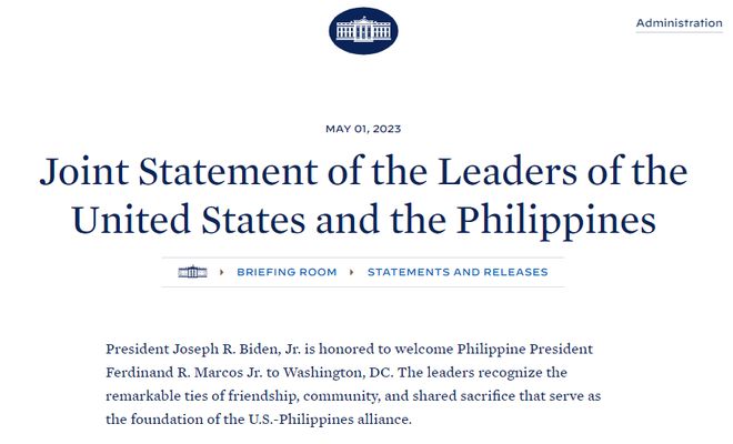 双方在会晤结束后并未召开记者会,仅发表了联合声明。声明强调,美菲双方要“坚定不移地致力于南海的航行和飞行自由,以及尊重各国在其专属经济区内符合国际法的主权权利的重要性。”声明还提到,菲律宾军队、公务船或飞机,一旦在包括南海在内的太平洋海域遭遇袭击,美国将引用双方于1951年签订的《美菲共同防御条约》的承诺,共同采取应对行动。