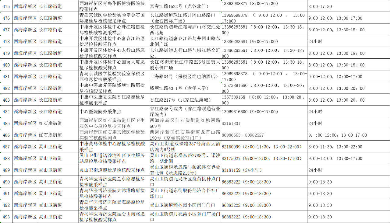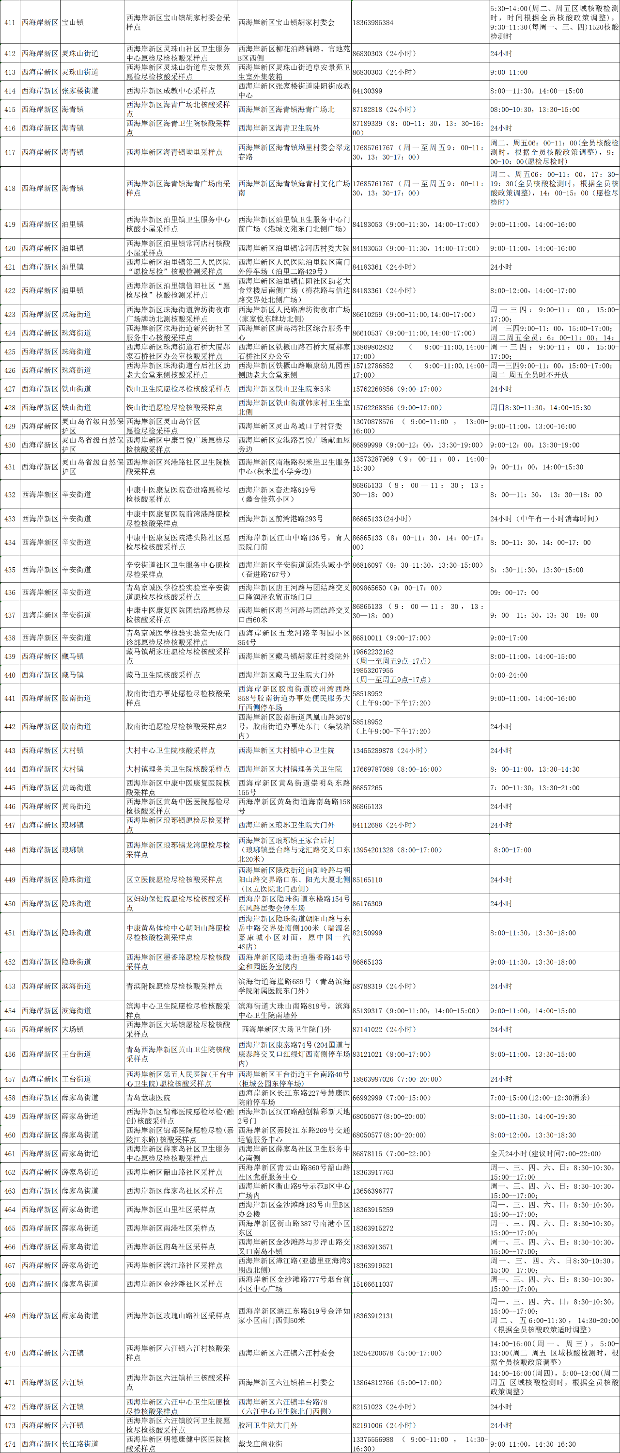 青岛西海岸新区愿检尽检核酸采样点汇总