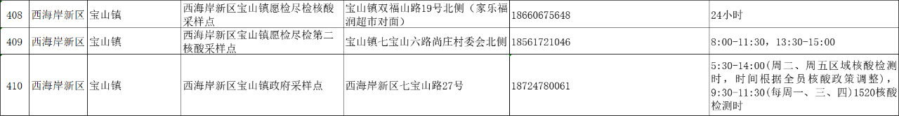 ⭐西海岸新区愿检尽检采样点一览表⭐