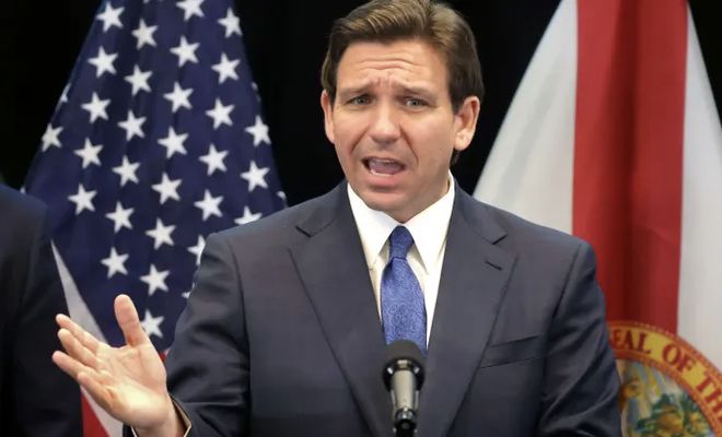 这位美国州长还是小有名气的,就是被认为最有可能跟特朗普争夺2024年美国总统大选共和党总统提名人的德桑蒂斯。