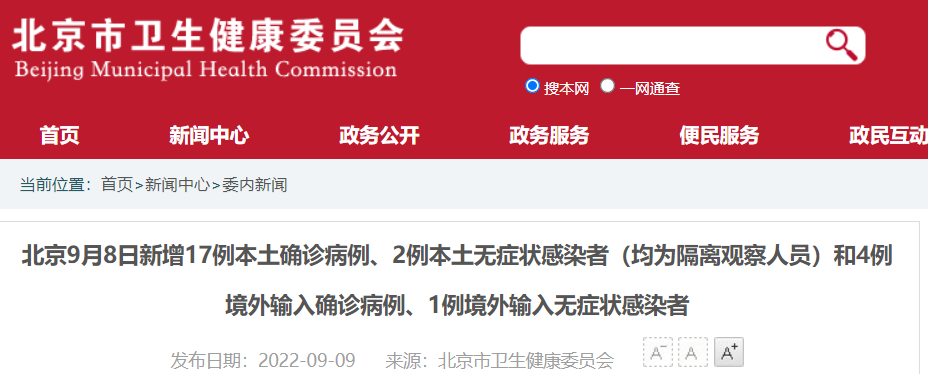 9月8日0时至24时北京新增17例本土确诊和2例无症状
