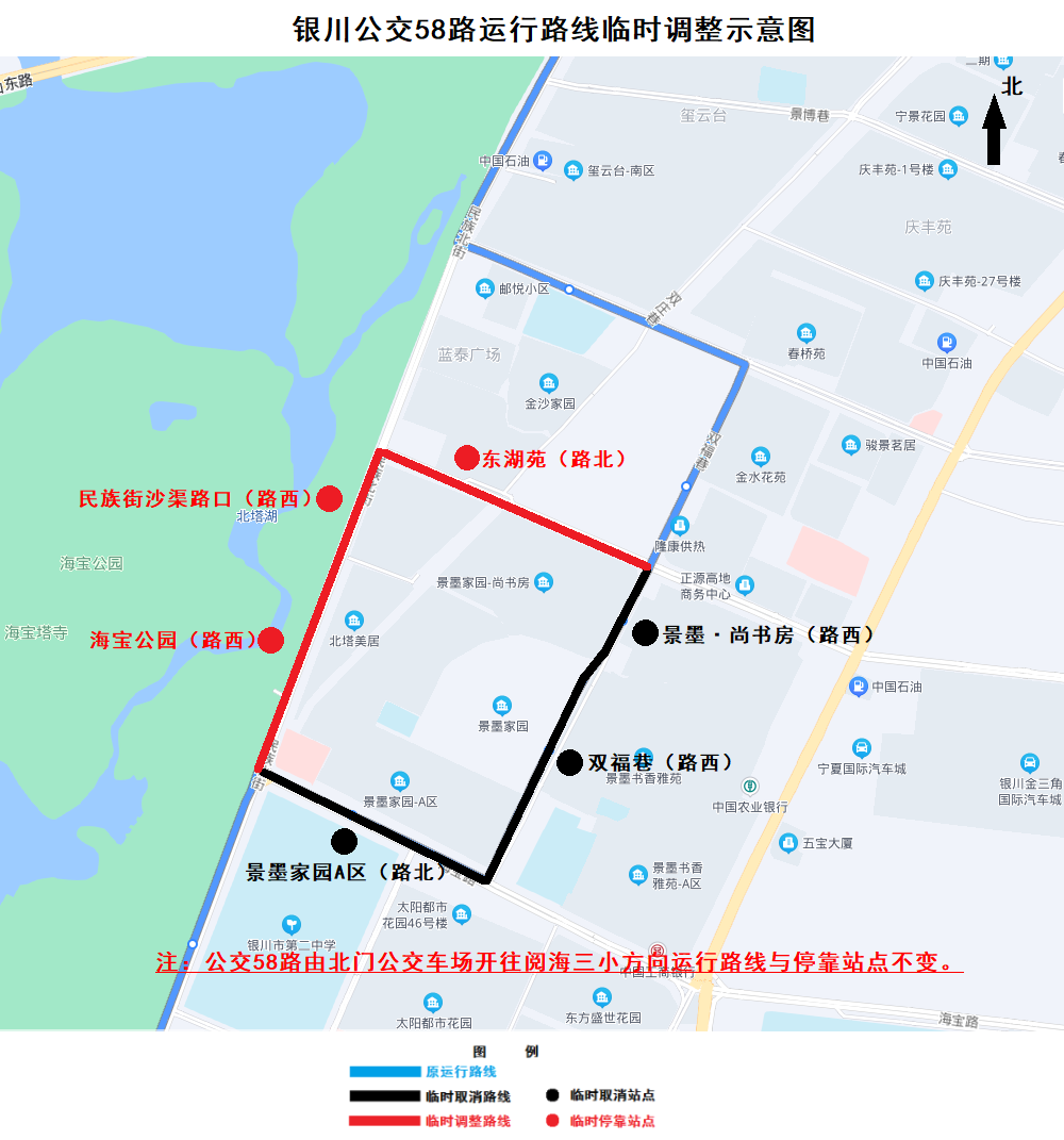 临时取消3站:景墨·尚书房(路西)、双福巷(路西)、兴庆区十八小学(路南)