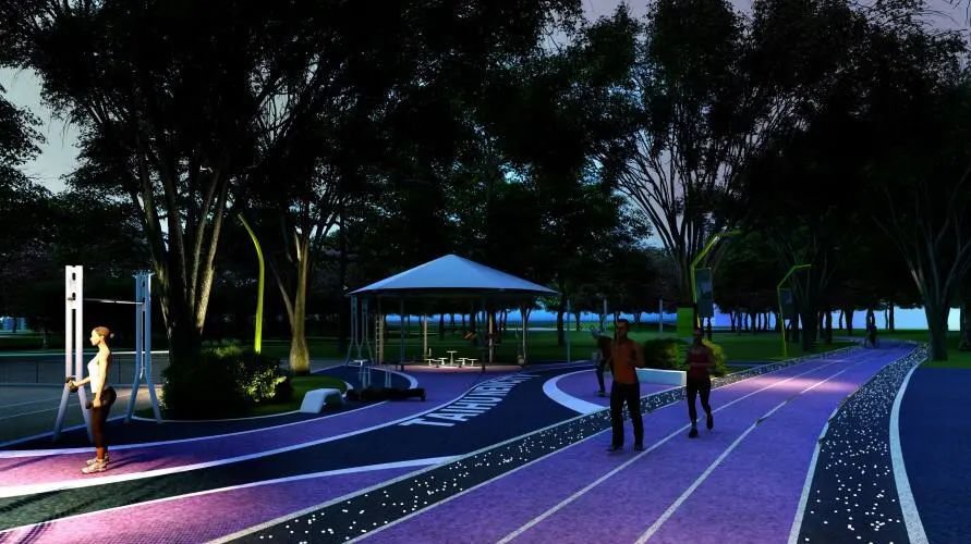 步道还将配置丰富的健身器械和AI人脸识别系统交互大屏,可实时显示用户步道排名、运动时长,当日完成量以及消耗卡路里等,充分利用大数据云平台等新技术,科学指导全民健身