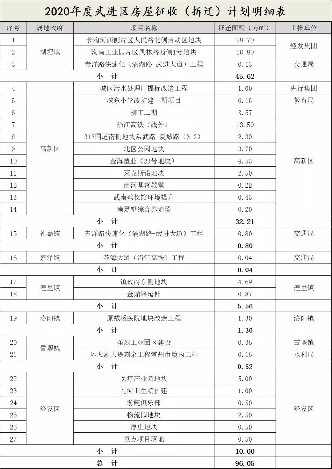 1.武进区2020年拆迁计划公布:96.05万㎡