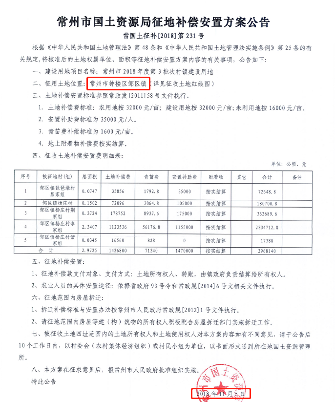 9月29日江苏省自然资源厅网站公布了,关于同意常州市2018年度农用地转用和土地征收第3批次实施方案