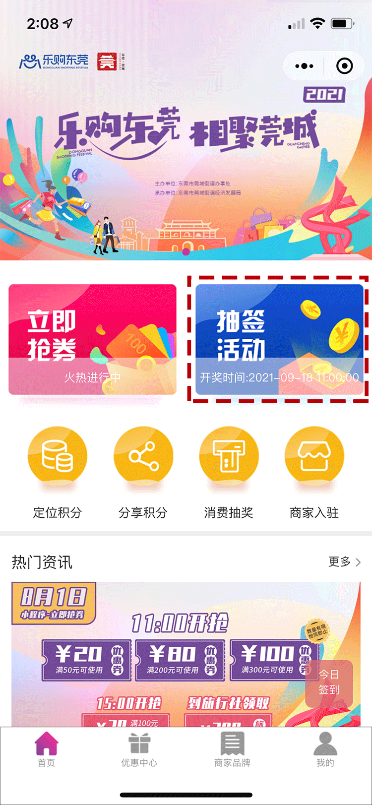 领券形式:进入“乐购莞城”小程序登记报名,坐等开奖结果