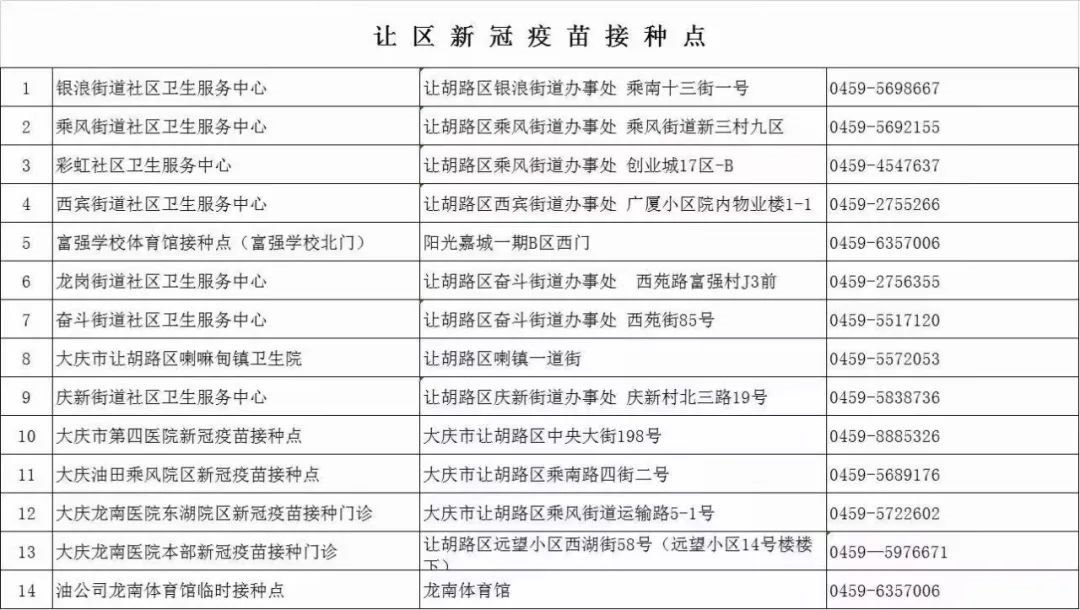 大庆让胡新增9处新冠疫苗接种点接种时间
