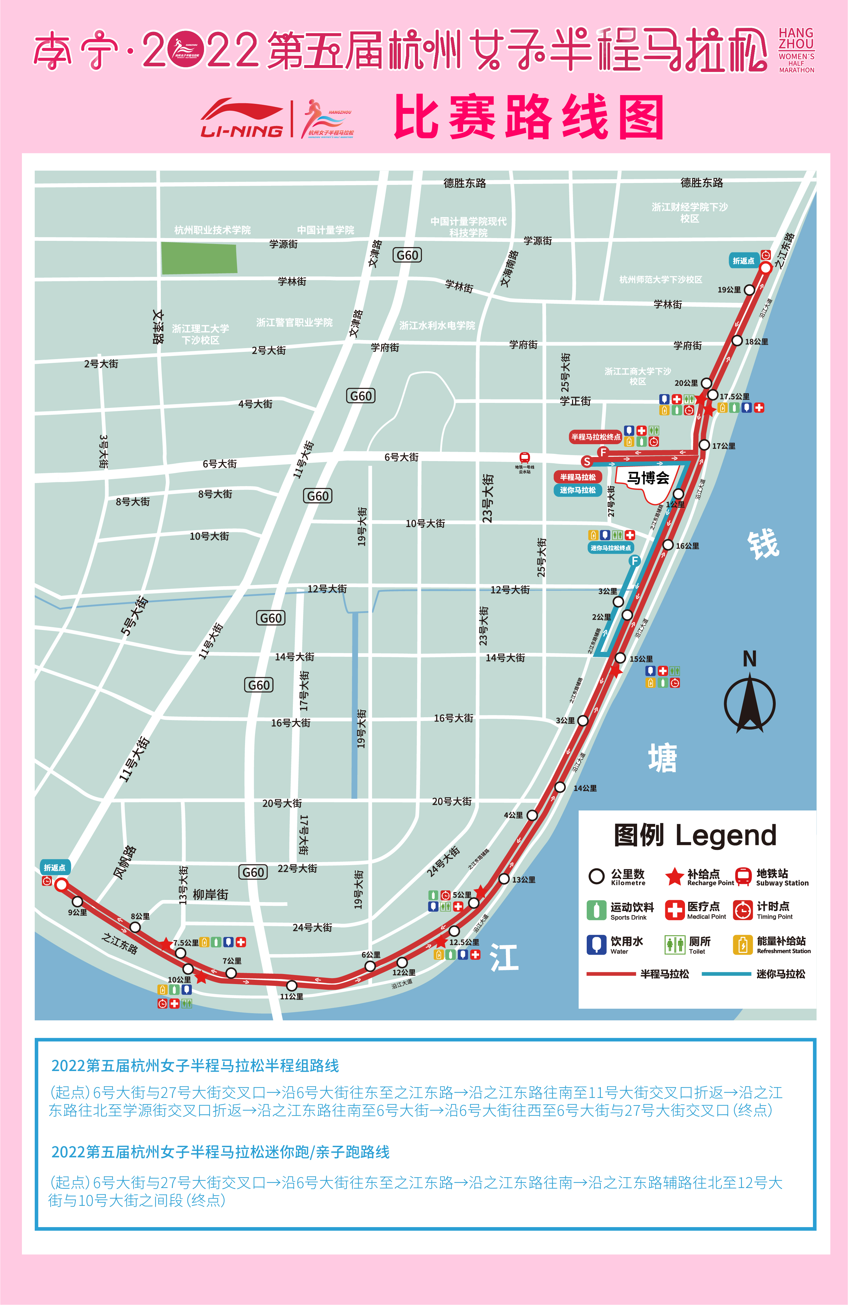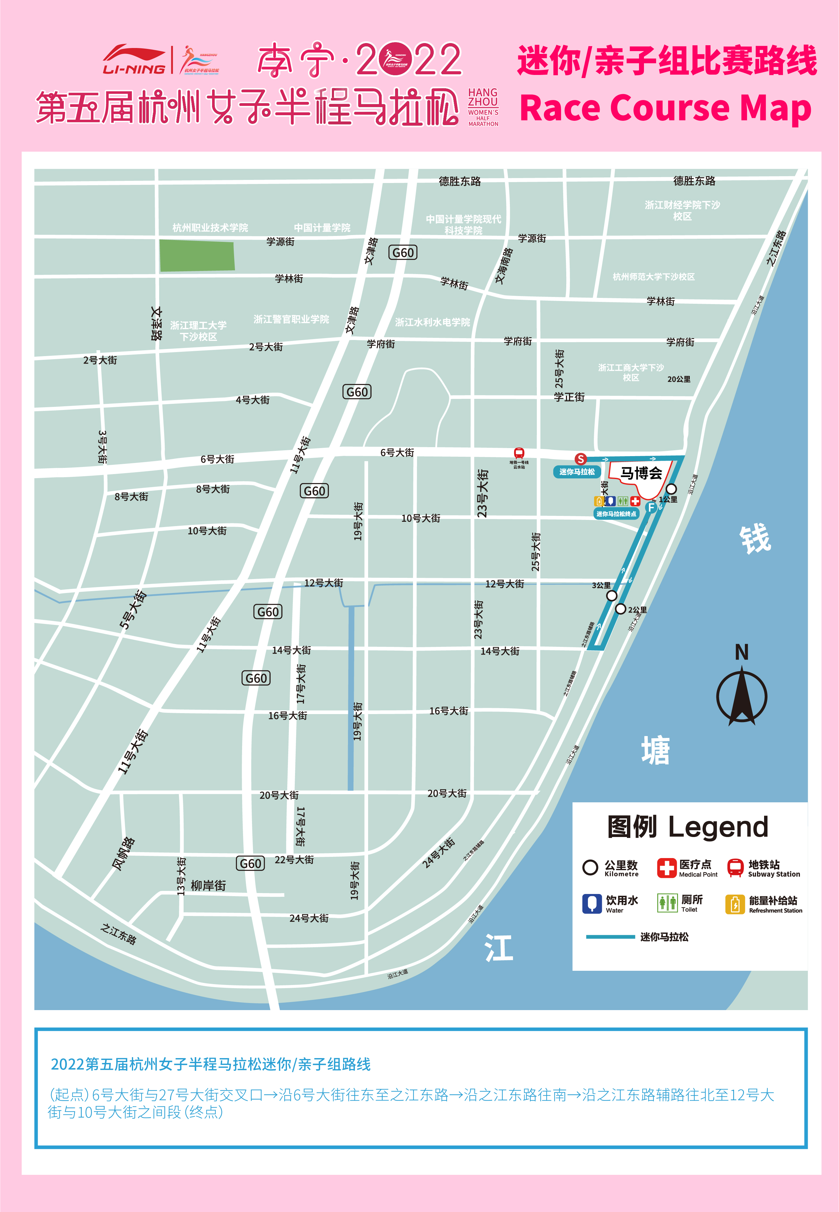 迷你/亲子组路线:(起点)6号大街与27号大街交叉口→沿6号大街往东至之江东路→沿之江东路往南→沿之江东路辅路往北至12号大街与10号大街之间段(终点)