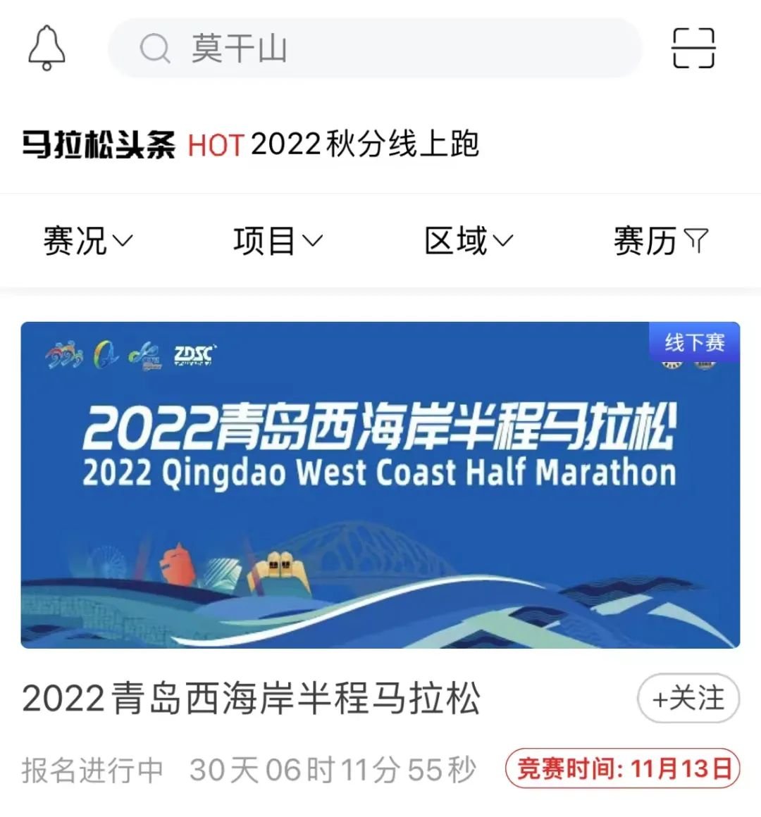 2022青岛西海岸半程马拉松将于11月13日鸣枪起跑!为拓宽报名渠道,本次赛事共开放赛事包小程序(已满额停止)、赛事官网、最酷、咕咚、跑跑网、马拉马拉、数字心动App七大报名通道,运动员任选一个通道完成报名即可。