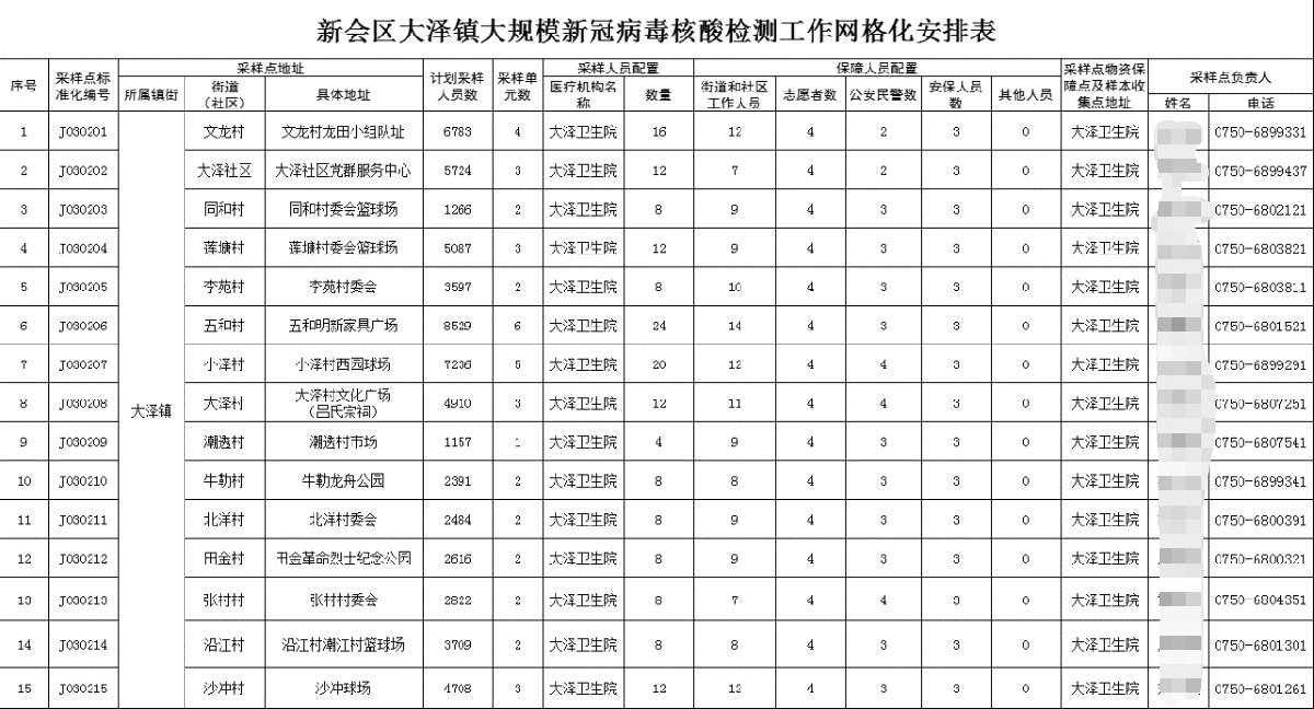 新会大泽镇大规模核酸检测采样点(新会大泽镇大规模核酸检测采样点电话)
