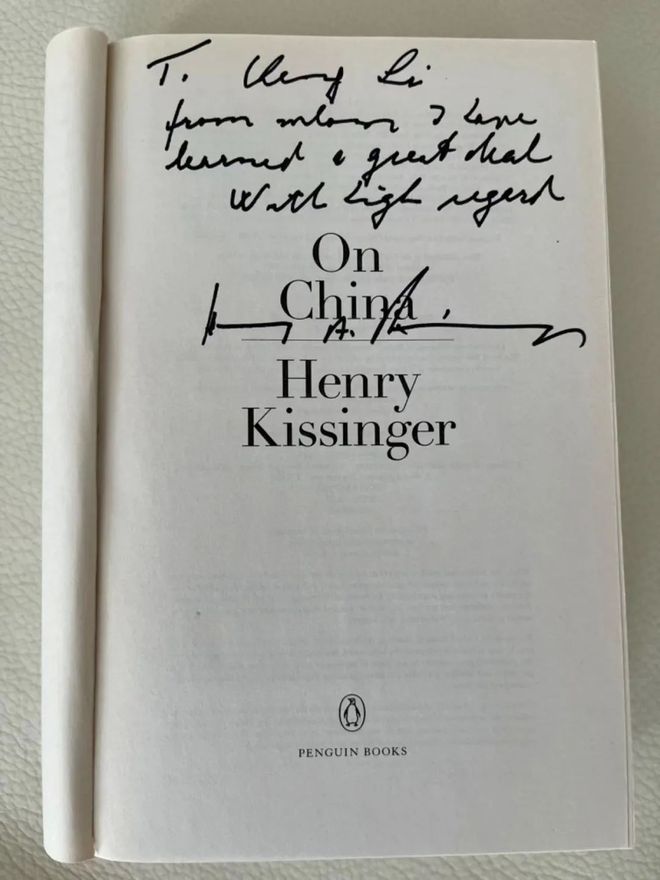 基辛格给李成签名赠书 图/受访者提供