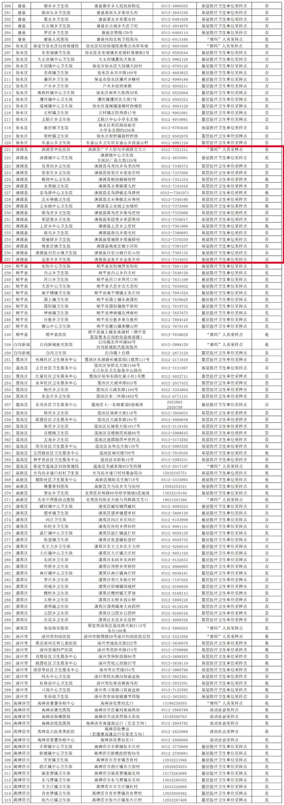 涞源县核酸检测便民采样点 涞水县核酸检测点