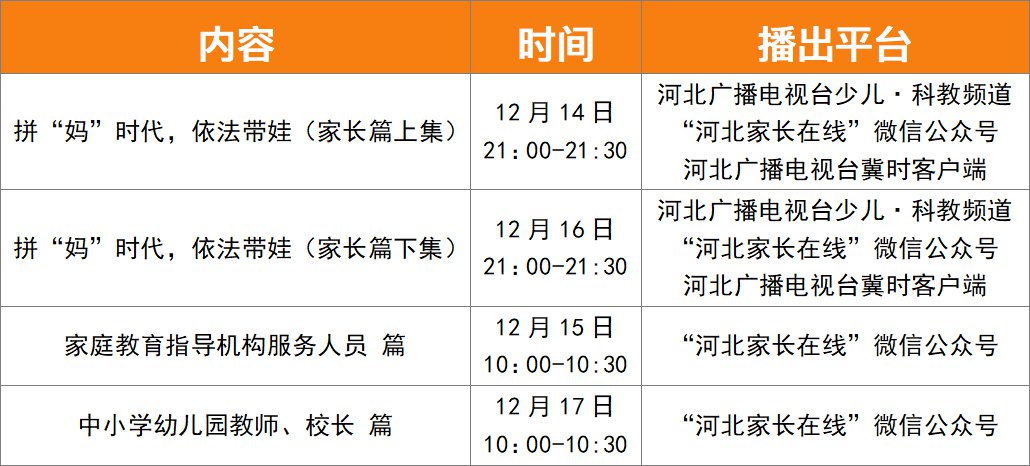 《〈家庭教育促进法〉系列解读》将于12月14日-17日播出。具体播出时间以及平台如下。
