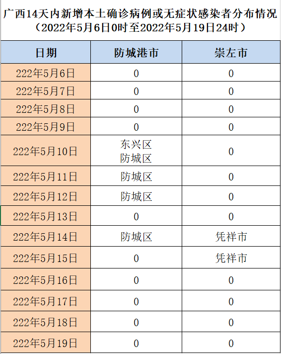 3、广西区内14天内新增本土确诊病例或无症状感染者分布情况