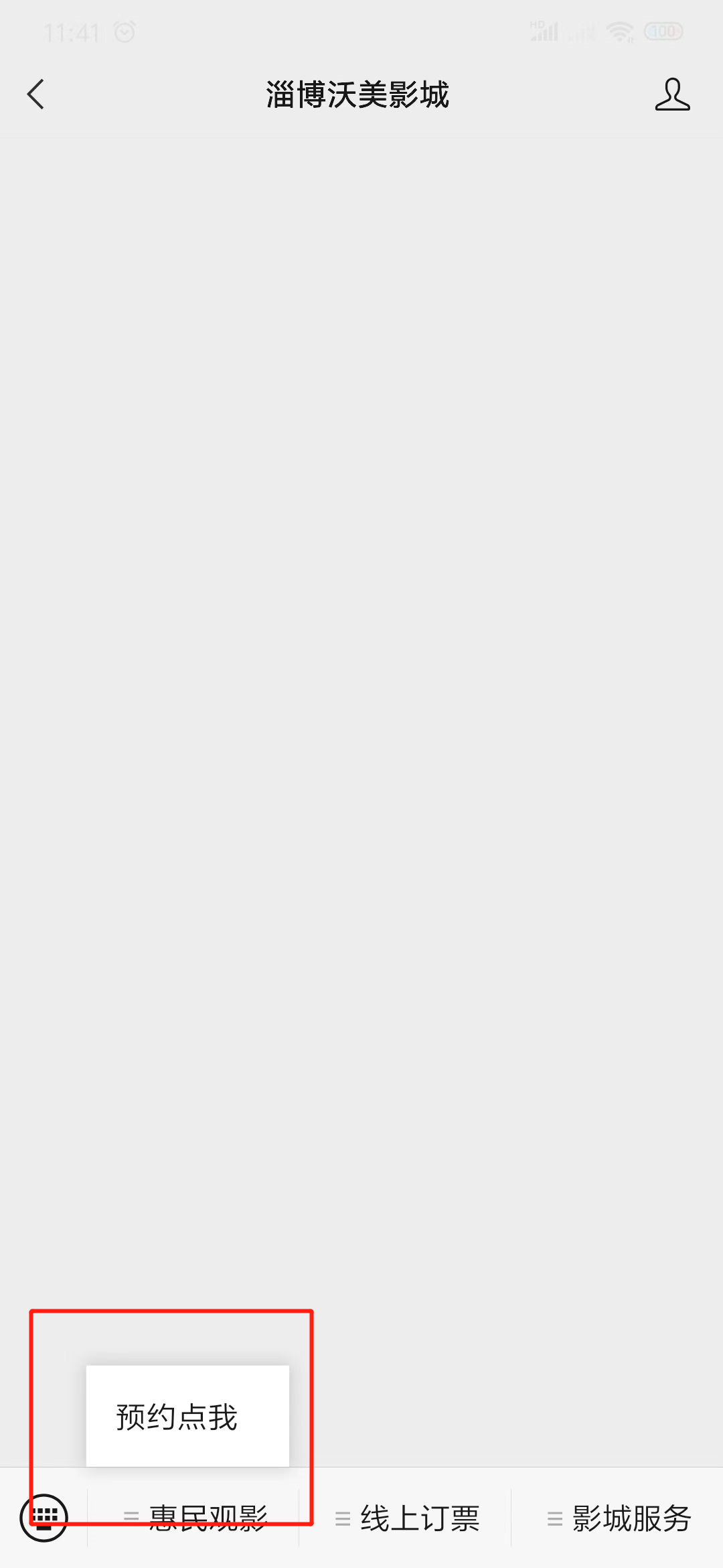 第二步:点击底部菜单栏的【惠民观影】后,点击【预约点我】。