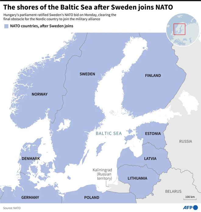 瑞典加入北约后,波罗的海沿岸北约国家成员国将增至9个 图源:法新社