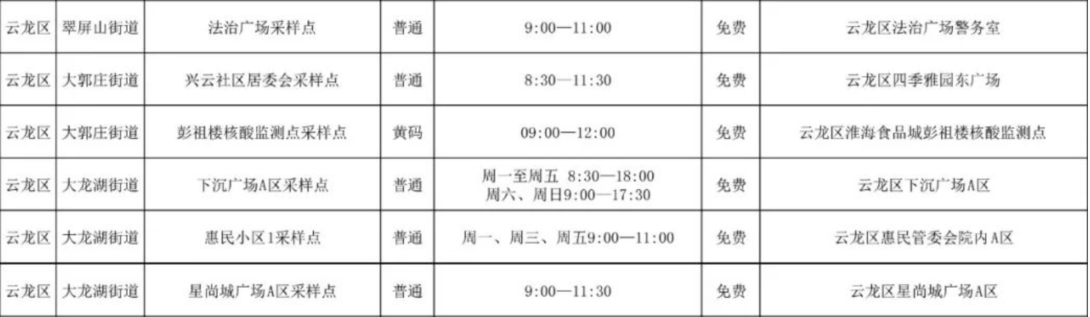 徐州市云龙区免费核酸检测采样点(徐州市云龙区免费核酸检测采样点电话)