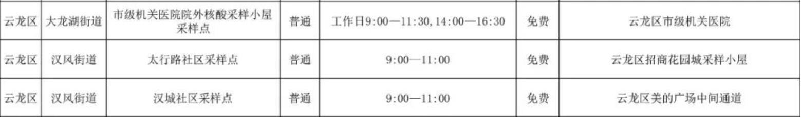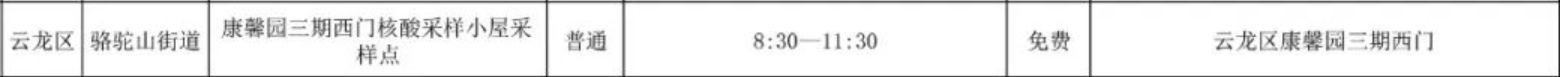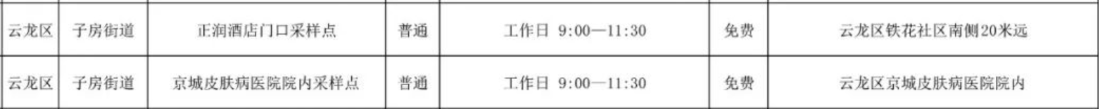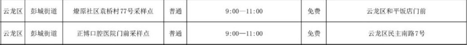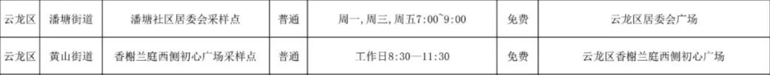 徐州市云龙区免费核酸检测采样点