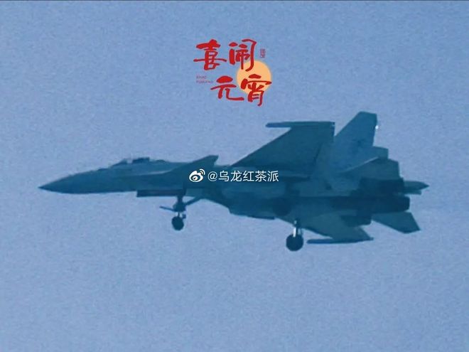 飞行中的弹射版歼-15(图源:微博@乌龙红茶派)