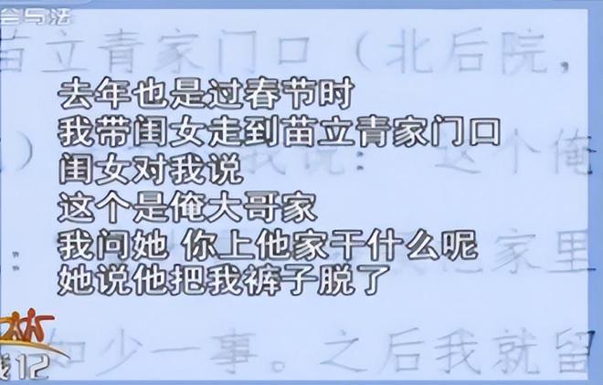 当时晓晓就告诉父亲,自己的大哥,也就是苗立青一大早将自己带回了家,又把自己裤子脱了。